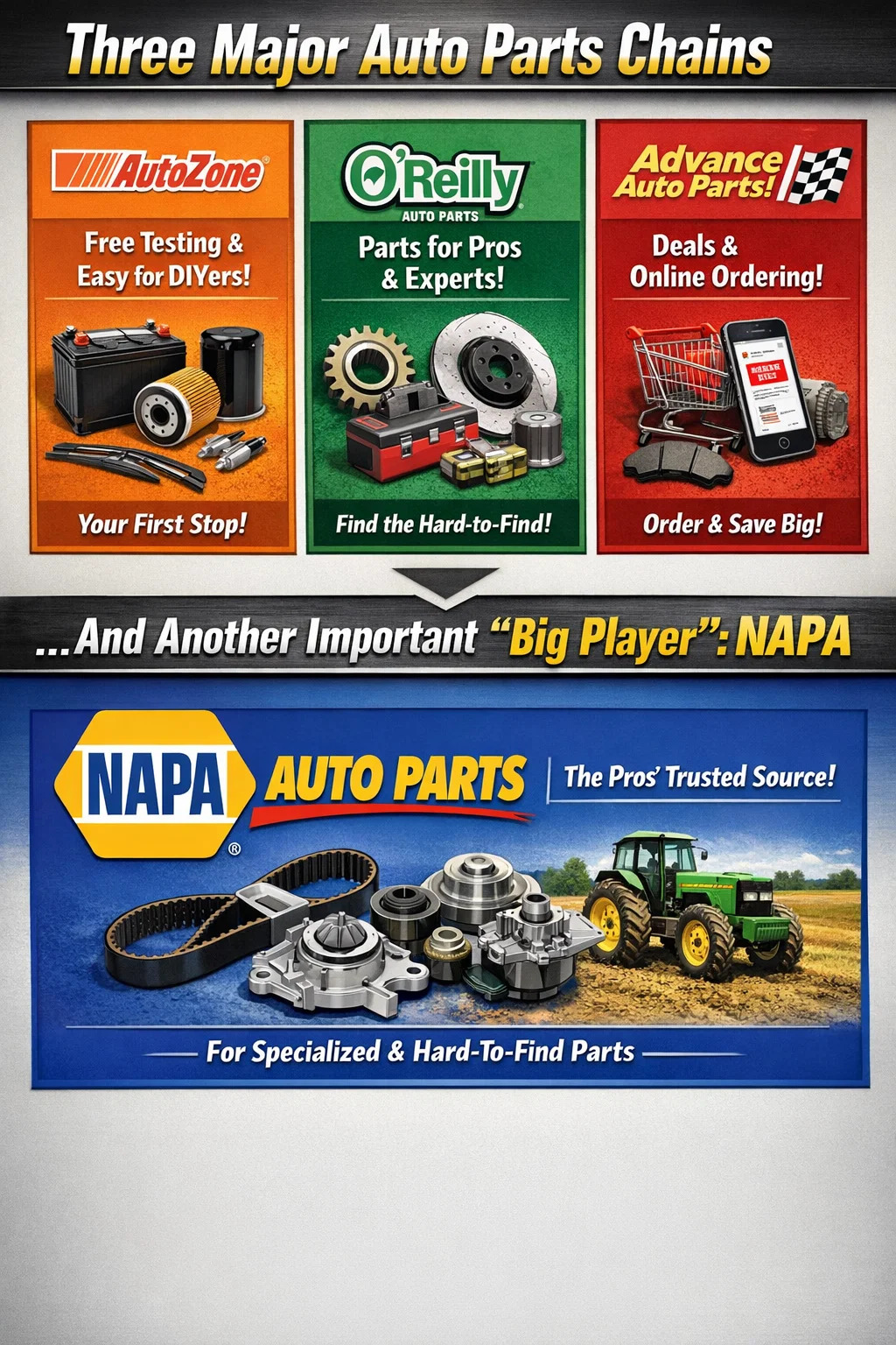 Mặc dù ba công ty nêu trên thường được gọi là “ba ông lớn” nhưng NAPA Auto Parts cũng có sự góp mặt vô cùng quan trọng. Nó chủ yếu phục vụ các kỹ thuật viên sửa chữa chuyên nghiệp và thị trường máy móc nông nghiệp. Nếu bạn không thể tìm thấy một phụ tùng ô tô đặc biệt chuyên dụng ở “ba ông lớn” thì NAPA thường là hy vọng cuối cùng.