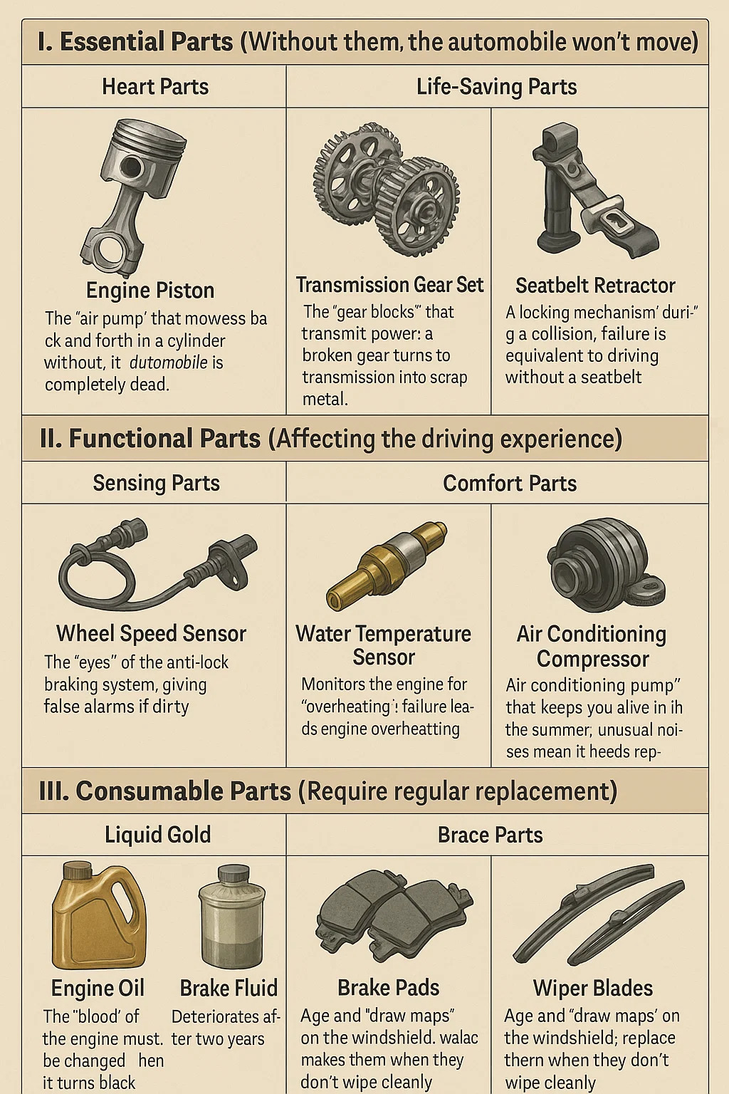 I. Các bộ phận thiết yếu (Không có chúng, Ô tô sẽ không di chuyển)